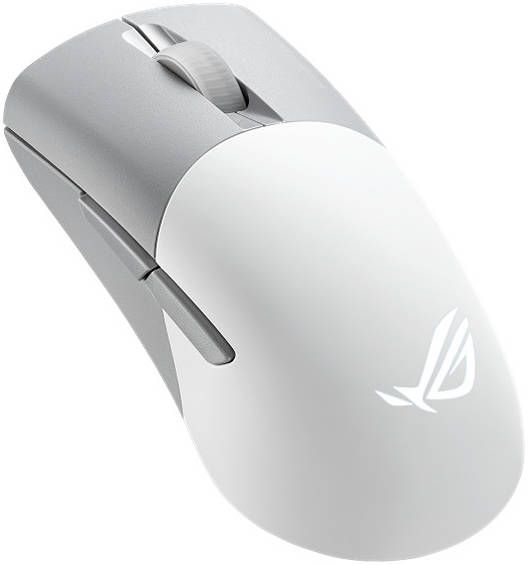 The ROG Keris Wireless AimPoint lightweight 75-gram wireless RGB gaming mouse features a 36,000 dpi ROG AimPoint optical sensor, tri-mode connectivity, ROG SpeedNova wireless technology, swappable mouse switches, ROG Micro Switches, PBT buttons, ROG Paracord, 100% PTFE mouse feet, five programmable buttons, ROG mouse grip tape.