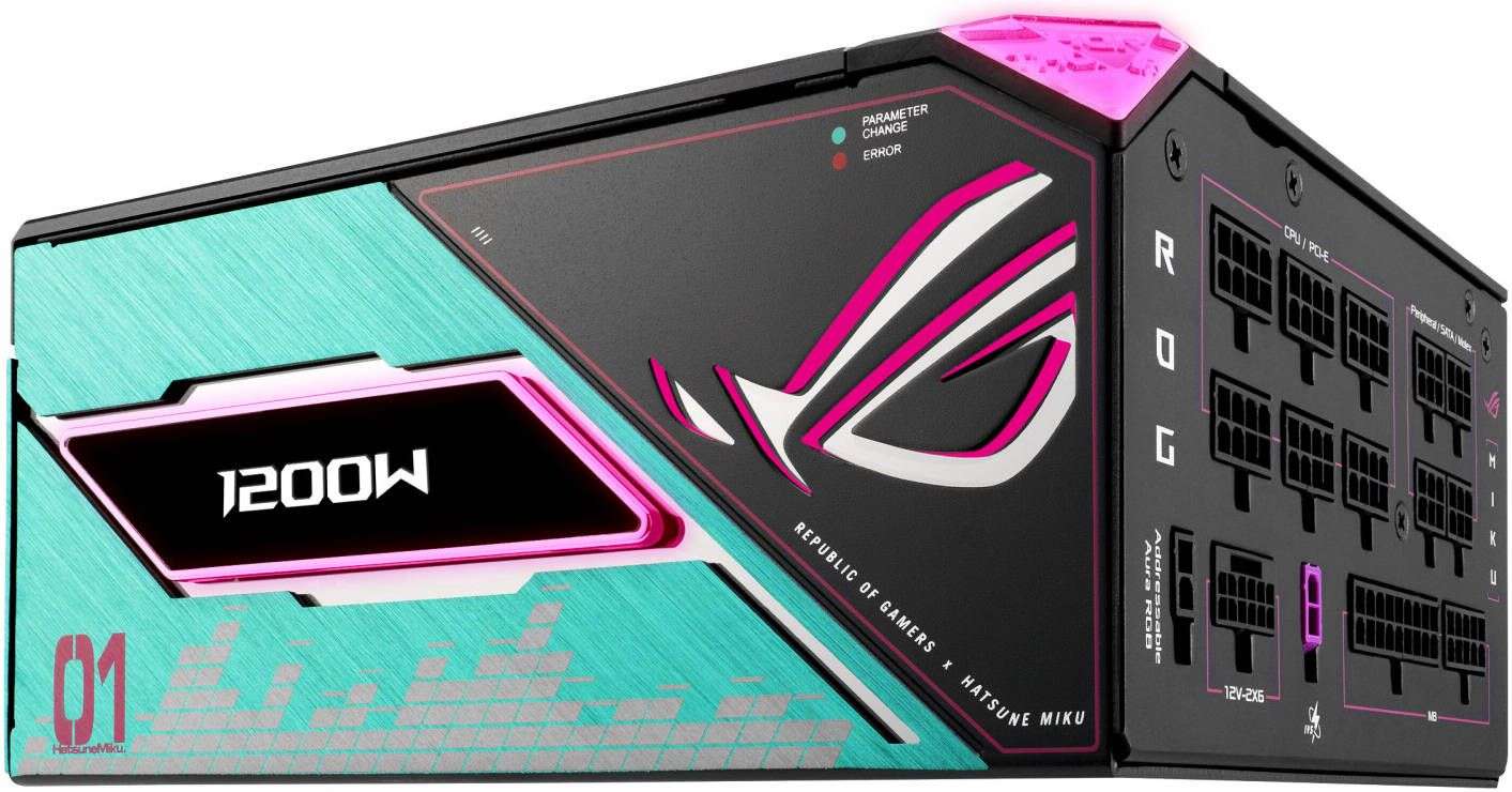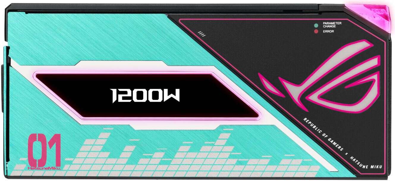 80 PLUS & Cybenetics Platinum certified: ROG Thor III Hatsune Miku Edition utilizes low-ESR capacitors and premium components for industry-leading power efficiency.