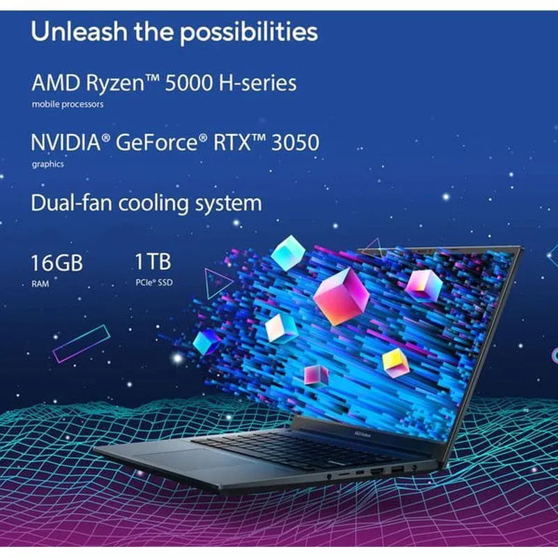 ASUS VIVOBOOK M3500QC-OLED0R7W | Ryzen R7 5800H, 16GB SSD, 1TB SSD, 15.6" OLED FHD, 4GB NIVIDIA RTX 3050, Win11 Home, Eng-Arab K/B, BLUE Description Reviews (0) 4,250.00 AED 4,500.00 AED Add to cart