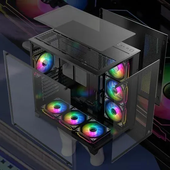 Specifications Case Size 425x280x420mm Motherboard Compatible ATX/M-ATX/ITX Material 0.7mm SPCC HDD/SSD 2/1 Graphic Card Length Limit 410mm CPU Cooler Height Limit 165mm I/O Ports USB3.0*1 USB2.0*2 HD Audio*1 TYPE C Cooling System Side 120mm fan*3 / 360mm water cooling Top 120mm fan*3/ 360mm water cooling Rear 120mm fan*1