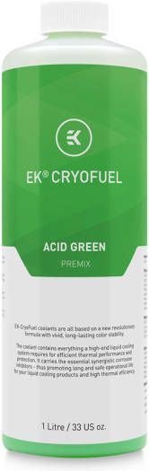 Description for EK-CryoFuel Acid Green Coolant, Corrosion Protection, Low Electrical Conductivity, Wide material Compatibility, REACH Compliant, Premix 1000mL, Acid Green | 3831109813294