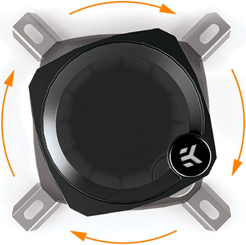 Rotatable Pump Top: Allows re-orientation of D-RGB EK badge in 90° increments for clean aesthetics