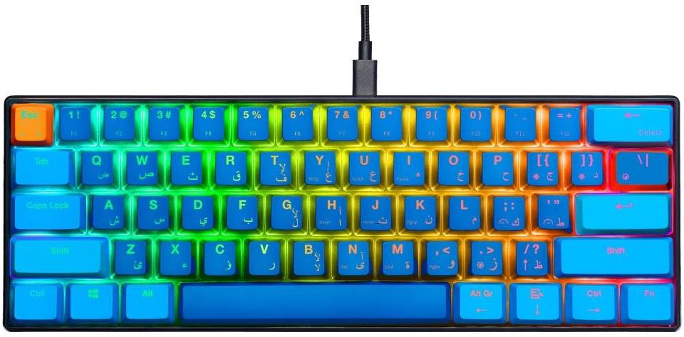 GamerTek GK60 Mini Pro Mechanical Gaming Keyboard, 61 Keys ANSI, English + Arabic Dual Layout, NKRO Full Anti Ghosting, RGB With 18 Effects, Detachable Cable, Jazz Blue | 396171