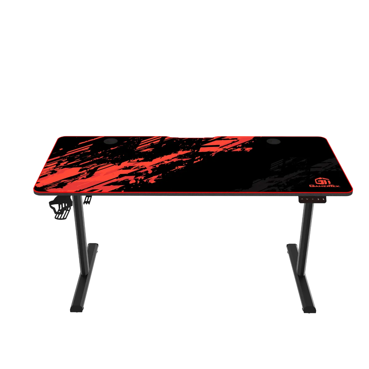 Take your gaming setup to the next level with the GamerTek Elevate X. This gaming desk features motorized legs for seamless height adjustments, allowing you to switch from sitting to standing with ease. Experience ultimate comfort and flexibility with the Elevate X, designed for gamers who demand more. Button operated electronic lift. Headset & Cup Holder Spacious Design Adjustable height allowing standing and sitting positions Oversized Mousepad for comfortable gaming sessions Size: 140x60cm Height: 72cm - 117cm