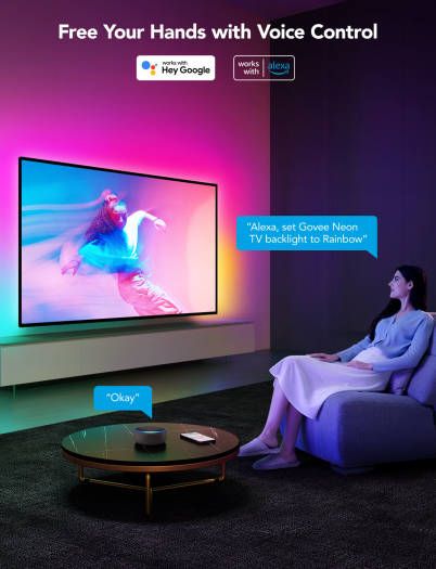 Description for Govee RGBIC Neon TV Backlight, For 45" - 55" Televisions, 180 LED Beads, 2.4GHz Wi-Fi + Bluetooth Connectivity, RGBIC Colorsm App, Control Box, Voice Control, 3m Length | H61B22D1