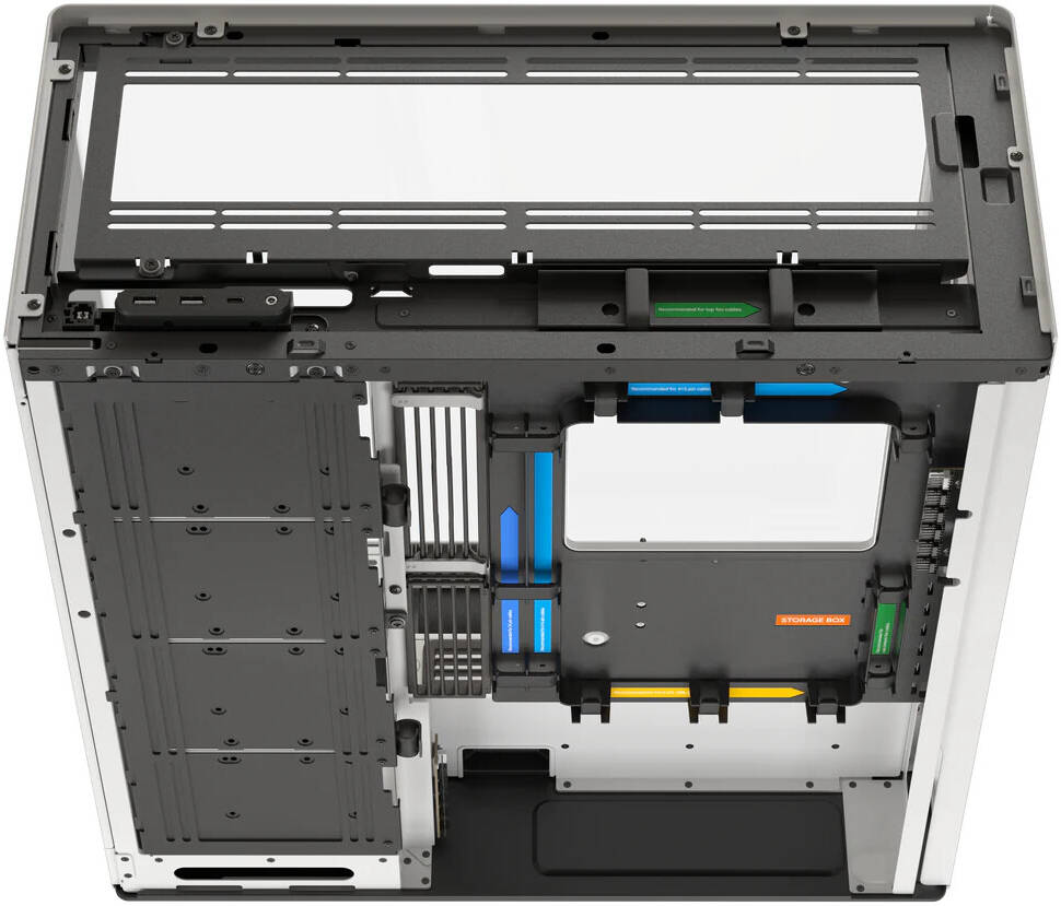 Specifications Form Factor Mid Tower Material SGCC sheet metal, tempered glass, ABS, Nylon, Silicon, Zinc alloy, NdFeB magnets PC Case Dimensions 541 x 259.5 x 547 mm Net Weight 17.84 kg Front I/O USB 3.2 Gen 2 Type-C x1 USB 3.2 Gen 1 Type-A x2 Audio Jack x1 Power & Reset Button x1 Motherboard Support E-ATX (Max Width 277 mm) / ATX / M-ATX / Mini-ITX Expansion Slots 6 Fan Support Maximum Amount: 11 Top: 3 x 120 / 3 x 140 mm Right: 3 x 120 / 3 x 140 mm Bottom: 3 x 120 / 3 x 140 mm Rear: 2 x 120 / 2 x 140 mm (Thickness Up to 30 mm) Fan PWM Repeater Channel: Total 12 ch Location: Cable Management Tray x1, PSU Shroud x1 CPU Tower Cooler Clearance Up to 185 mm Liquid Cooling Support Top: 280 / 360 / 420 mm (Thickness: 65 mm, not overlapping with RAM) Right: 280 / 360 / 420 mm (Thickness: 60 mm w/ GPU >317mm, 80 mm w/ top AIO) Bottom: 280 / 360 / 420 mm (Thickness: 120 mm) Graphics Card Clearance Length: Up to 480 mm Width: 195 mm GPU Support 2 - 5 Slots RAM Clearance If radiator thickness > 65 mm: 420 mm - 32 mm / 360 mm - 43 mm Power Supply Support ATX / SFX / SFX-L PSUs Length: Up to 220 mm (Clearance - 290 mm) Storage Right Fan Mount: 4 Storage Bays: 4 x 3.5'' / 8 x 2.5'' Cable Management Tray: 1 Storage Bay: 1 x 3.5'' / 2 x 2.5'' Storage Bay Included 4x Internal Display Support VESA Mounting: 75 x 75 mm / 100 x 100 mm Display Size: 14 in. (Max) Location: Front Right Pillar Dust Filter Bottom: 1 (Removable) Top: 1 (Built-in) Right: 1 (Built-in) Rear Bottom: 1 (Removable)