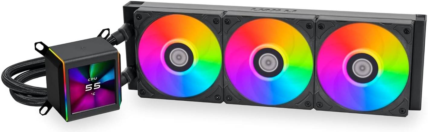 Lian Li Galahad II LCD 360 AIO RGB CPU Liquid Cooler, 2.88†IPS LCD Screen, Asetek 8th Gen 3600 RPM Pump, 120mm FDB Fans, Up to 2450 RPM Fan Speed, 79.9 CFM Airflow, Black | G89.GA2ALCD36B.00