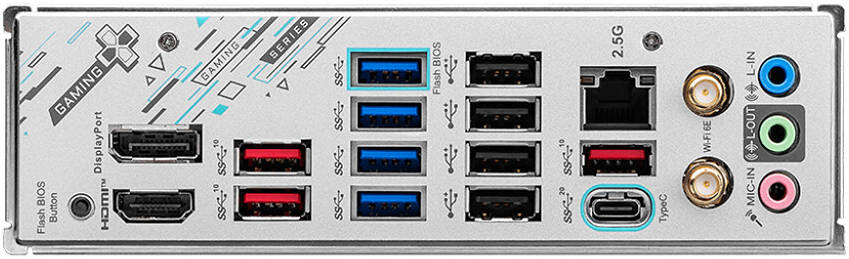 - Back Panel Ports DisplayPort, USB 2.0, 2.5G LAN, Wi-Fi/Bluetooth, Audio Connectors, HDMI, Flash BIOS Button, Various USB ports