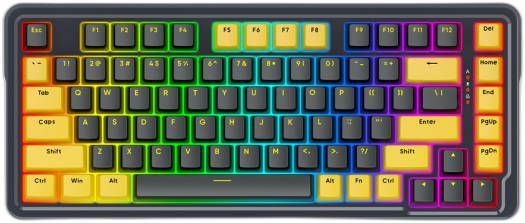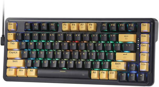 Description for Redragon Elf K649Y-RGB 65% Mechanical Keyboard, Custom Gold-Melt Switch, Hot-Swappable Socket, Wired Connectivity, Detachable Type-C Cable, TPR Gasket Design, English Layout, Black/Yellow | K649Y-RGB