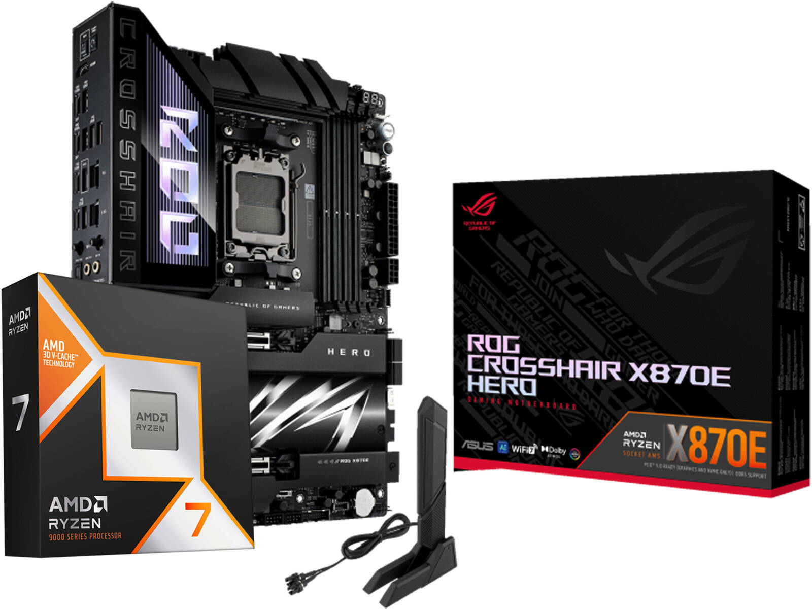 SpectraX Bundle - AMD Ryzen 7 9800X3D AM5 Desktop Processor, 8 Cores & 16 Threads, Up to 5.2 GHz Max Boost Clock + ASUS ROG CROSSHAIR X870E HERO, AMD AM5 Motherboard Description Reviews (0) 6,200.00 AED 6,600.00 AED Add to cart