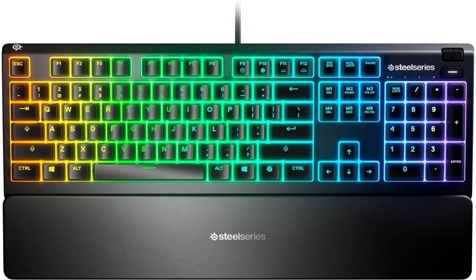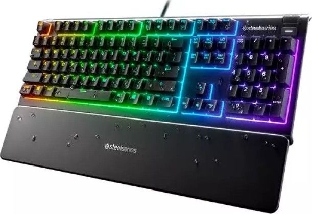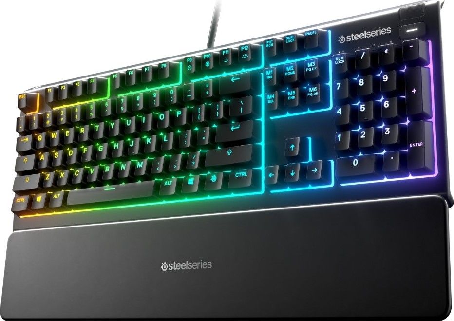 SteelSeries Apex 3 Water Resistant Gaming Keyboard, Premium Magnetic Wrist Rest, Whisper Quiet Gaming Switch, 10-Zone RGB Illumination, Anti-Ghosting, English US Layout, Black | 64795