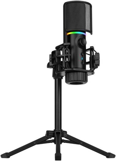 Description for Streamplify Mic Tripod RGB Microphone With Tripod, 2 Audio Playback Modes, Quick Mute Functions, RGB Lighting, Pop Filter, Cardioid Pickup Pattern, Plug & Play, Black | MIC-48-RGB-TP-BK
