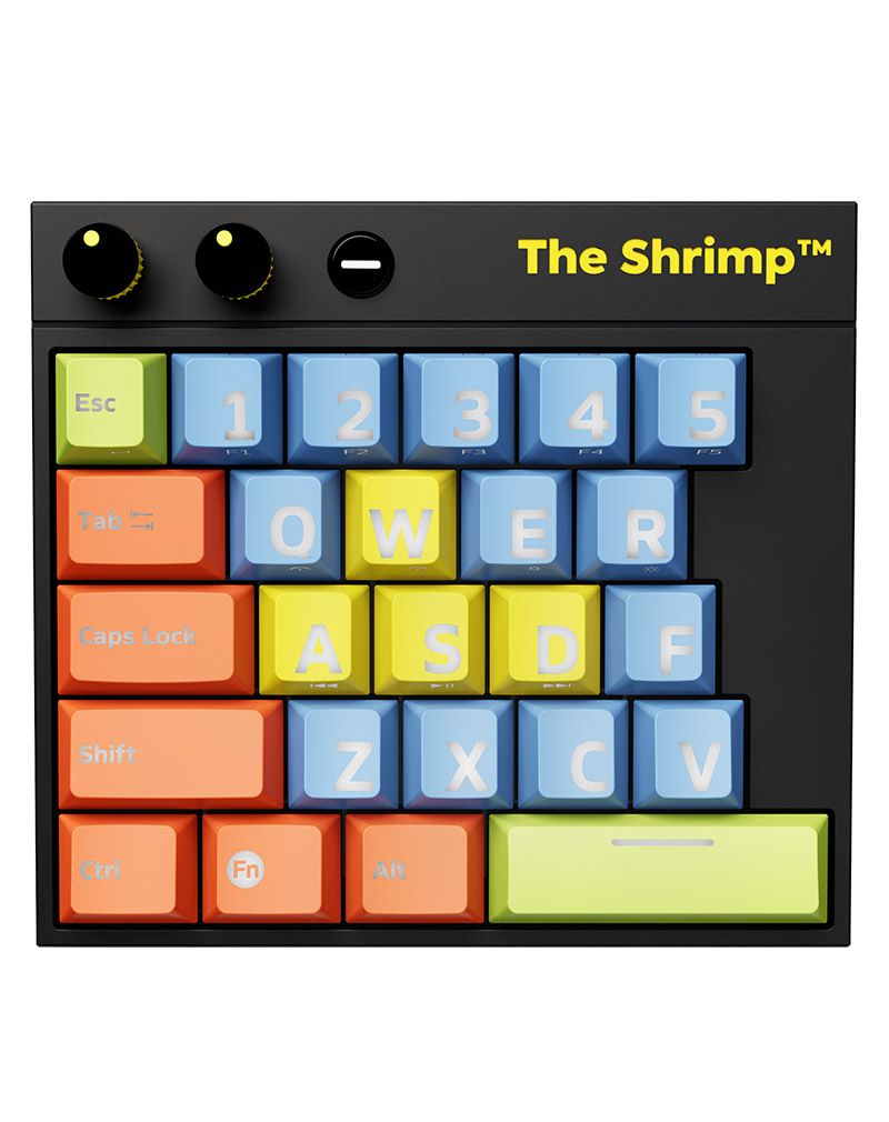 Ultracompact mechanical gaming keyboard liberating you from your gigantic and uncomfortable keyboard. Just move the monster aside and whip out The Shrimpâ„¢!