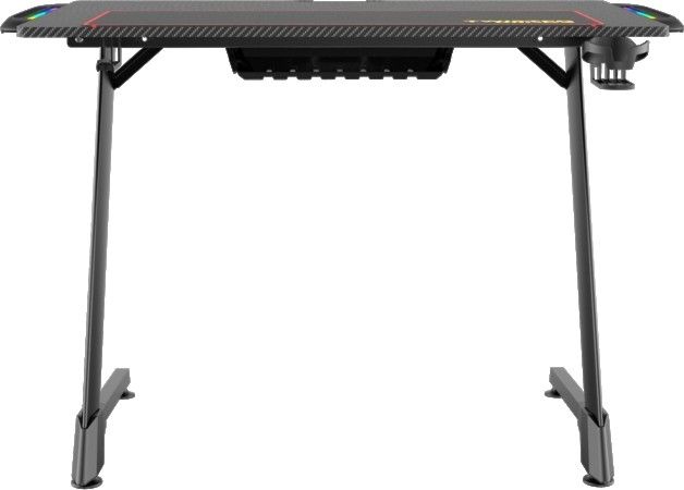 Twisted Minds Z Shaped Carbon Fiber Texture Gaming Desk, 106.5cm x 65.5cm x 11cm Dimensions, RGB Light, Headphone Hooks & Cup Holder, Black | TM-Z-1060-RGB
