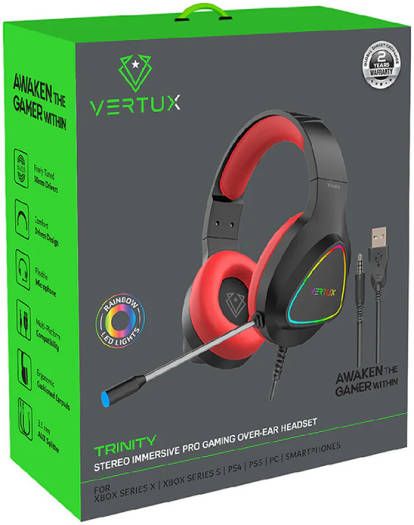 Create a gaming environment that is as real as it gets with Trinity, a 50mm over-ear headset. The ultra-clear, high-res microphone delivers studio-like voice clarity for high-quality conversations and an adjustable headband for all-day comfort. The RGB lights provide stunning illumination that sets the perfect environment for your gaming raids.